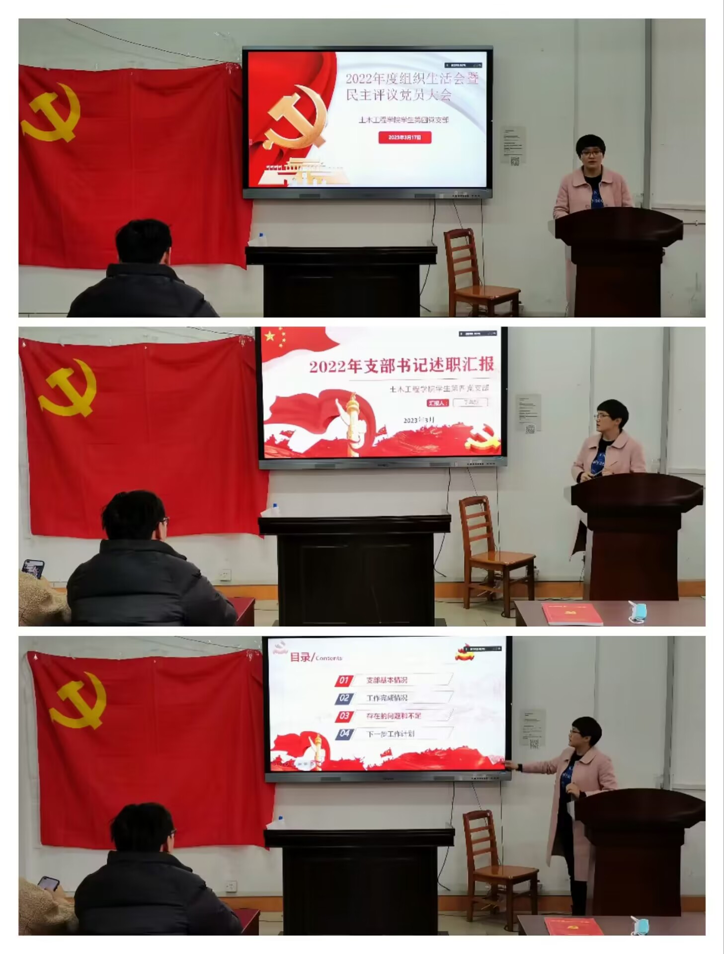 2023年3月17日上午,英国365集团学生第四党支部在土木楼四楼会议室召开2022年度组织生活会和民主评议党员大会。院党委委员邹品玉老师到会指导。会议由学生党支部书记李翠新老师主持,全体党员参加。