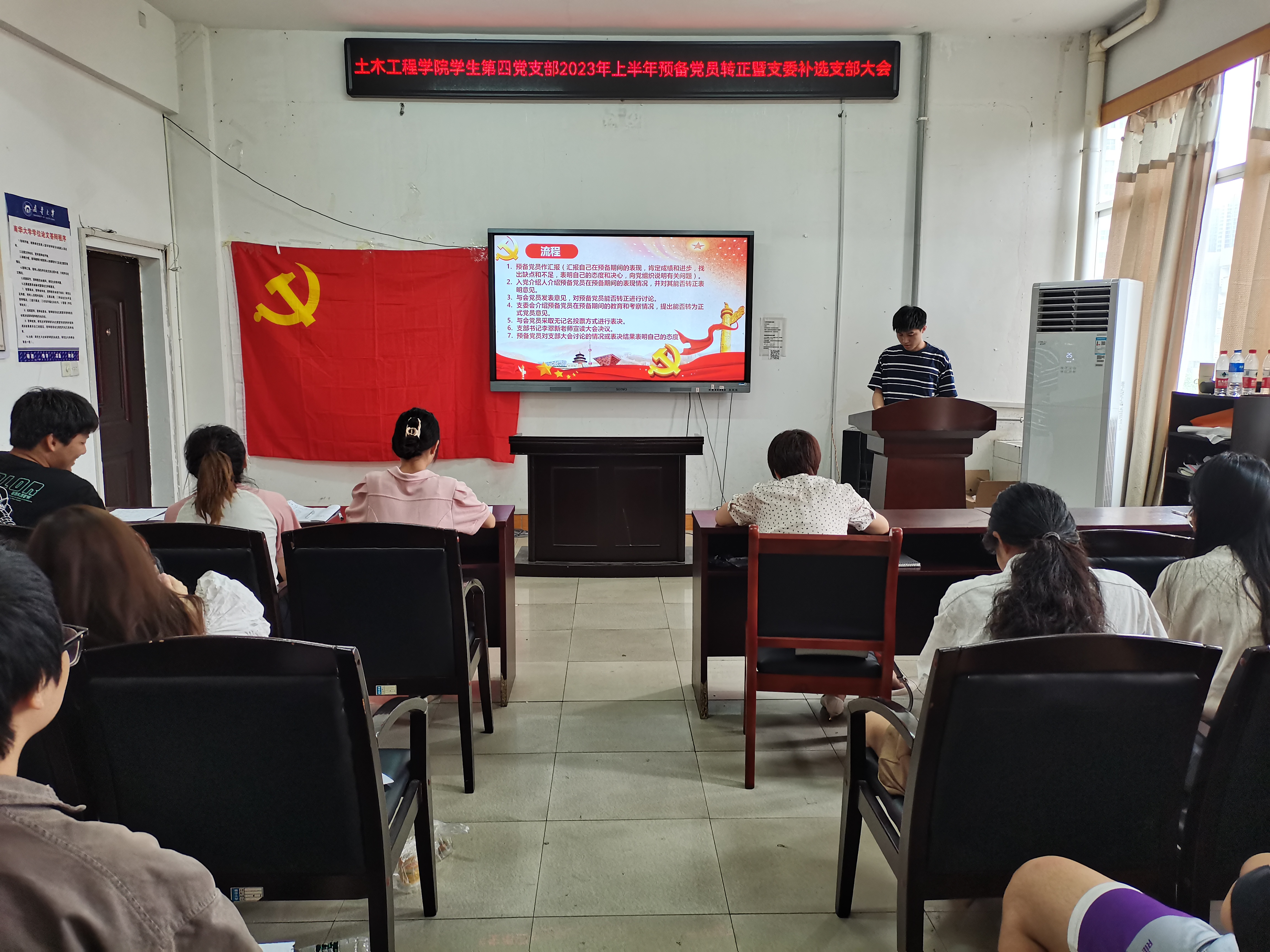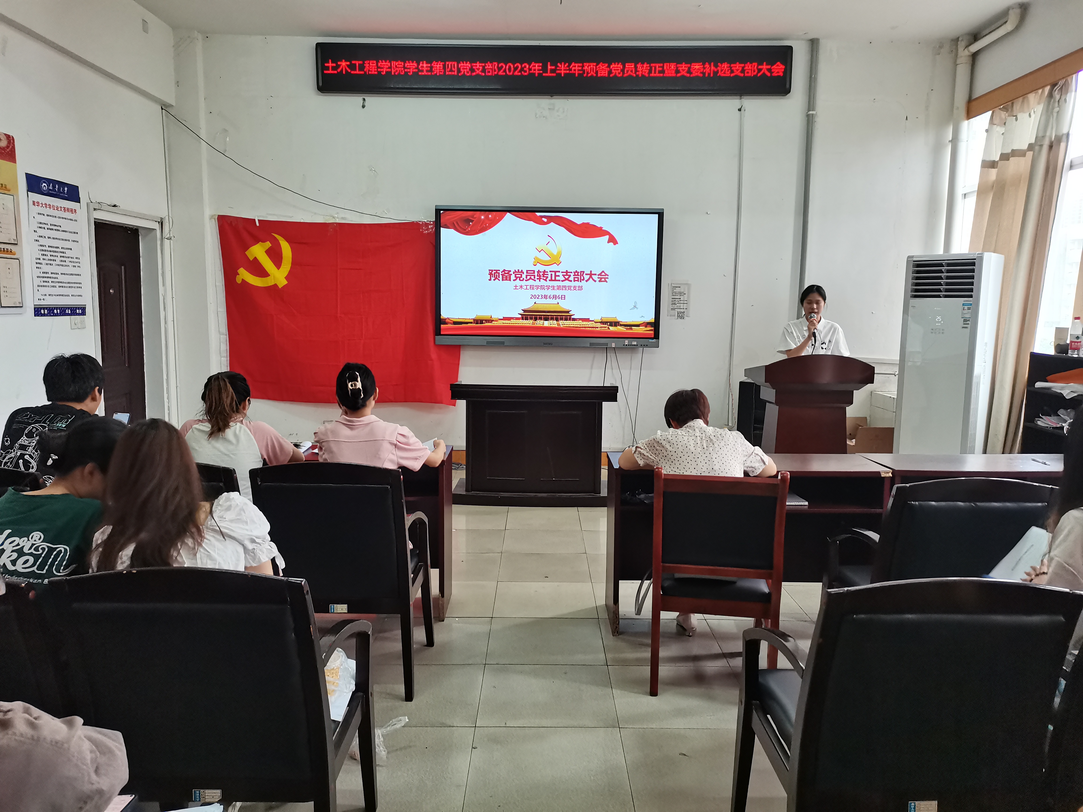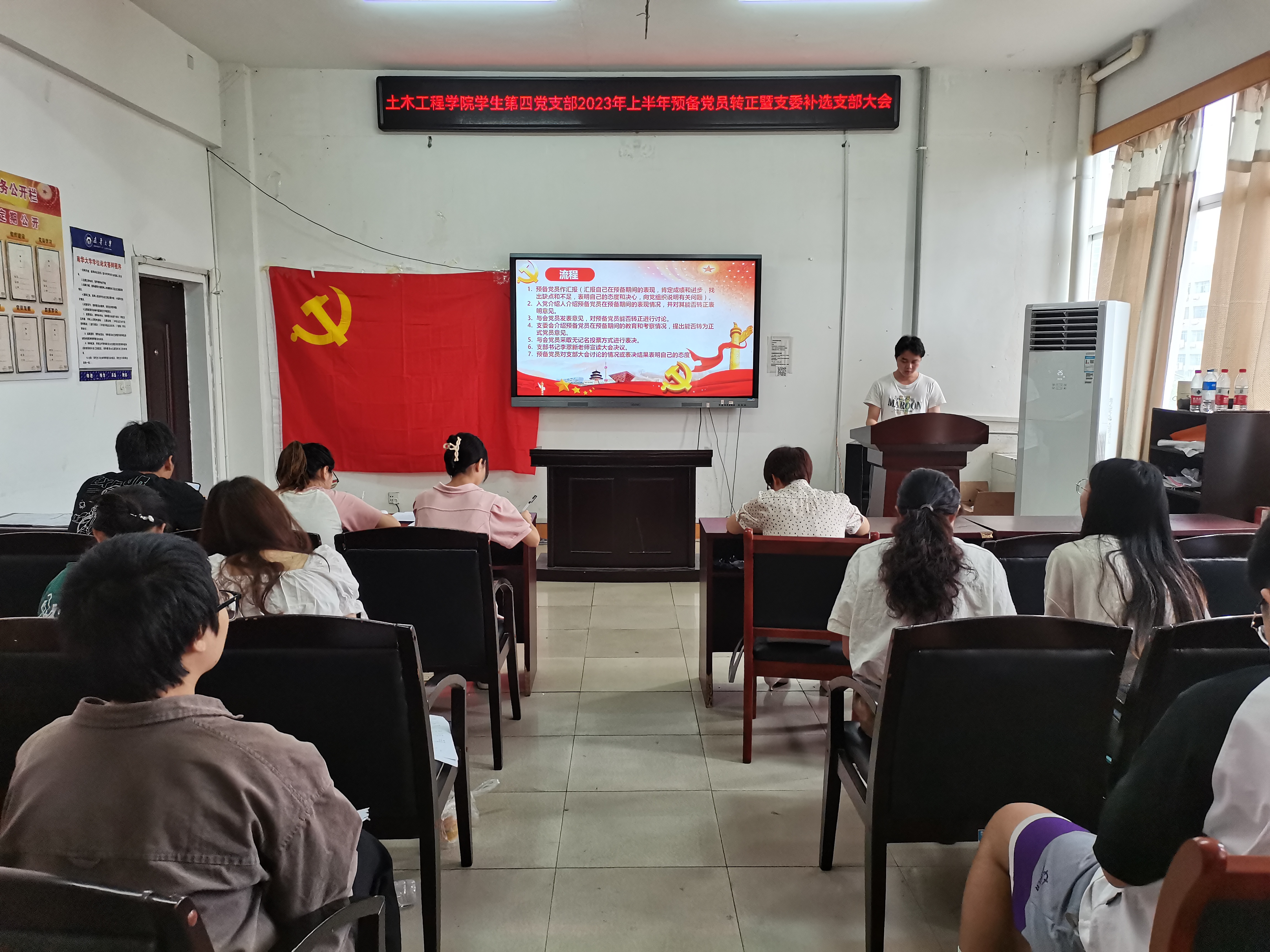 2023年6月6日上午,英国365集团学生第四党支部在土木楼四楼会议室召开预备党员转正暨支委补选大会,会议由支部副书记谌琪欣主持,支部全体党员参加。