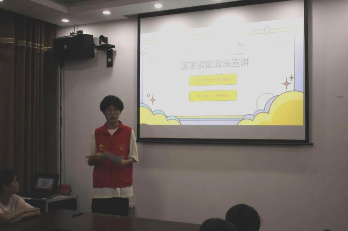 首先,志愿者们组织当地青少年开展国家资助政策讲座,向大家介绍资助政策,同时鼓舞他们努力学习,在力所能及之处帮助有需要的人,引导更多的青少年树立正确的世界观、人生观、价值观。