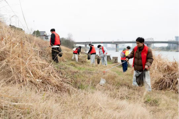 春水初生,绿意盎然。在酃湖公园和耒水河岸,志愿者身着红马甲,手持清理钳、垃圾袋等工具,沿湖畔步道及河岸浅滩细致巡查,清捡散落的塑料瓶、包装袋等生活垃圾。