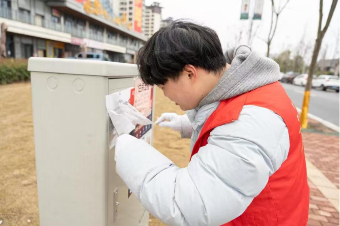 随后,志愿者来到清泉山社区,手持刮铲等工具,针对楼道、墙面顽固的“小广告”展开集中清理。通过发放手册、案例分析等形式,引导社区居民自觉抵制乱贴乱画行为,共建文明家园。
