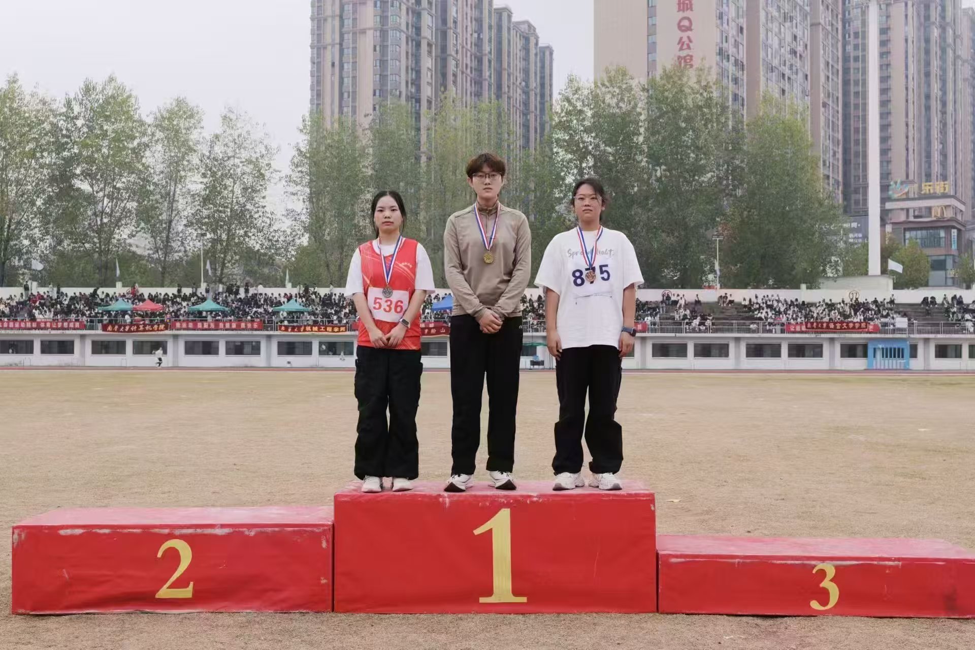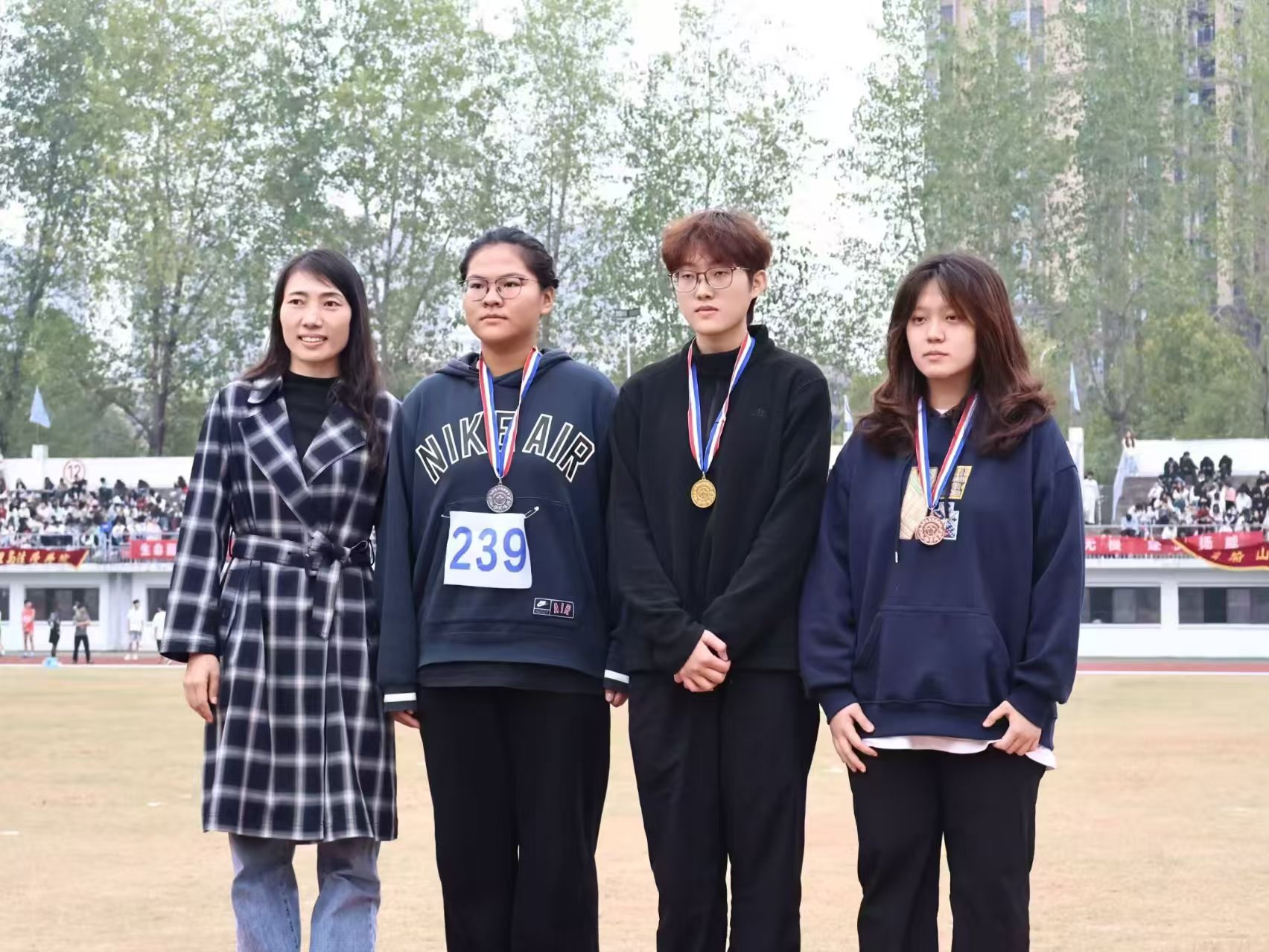 在个人项目中,杨昊表现亮眼,一举拿下男子5000米冠军与男子10000米亚军,用耐力与速度书写荣耀;刘科江同场竞技,斩获男子10000米冠军并刷新了校运动会的记录,与杨昊并肩站上领奖台。陈琳琪成为女子投掷项目的“双冠王”,凭借稳定发挥包揽女子铅球、标枪两项第一名,展现了强劲的竞技实力。葛妍欣在女子跳高赛场跃出佳绩,收获亚军;陈思盈双线作战表现出色,拿下女子100米跨栏亚军,同时在女子100米项目中跻身第六名。周亚琪在女子800米赛道奋勇冲刺,最终获得第六名;陈博理、肖亦彭分别在男子1500米、男子100米项目中位列第八,均实现了自我突破。