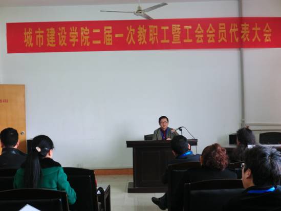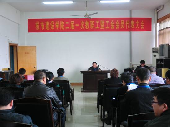 会上,首先是柯国军书记作 “双代会” 筹备及代表资格审核情况的说明并宣读校工会批复文件。由于陈振富院长外出学习无法到场,由柯国军书记代表陈振富院长作关于城市建设学院行政工作报告,工作报告全面总结和回顾了城市建设学院2014年期间党建工作、本科教学。研究生教育改革、科研工作、学生工作等方面的情况,提出今后学院的发展思路、发展目标和工作重点,齐心协力推动学院工作建设。