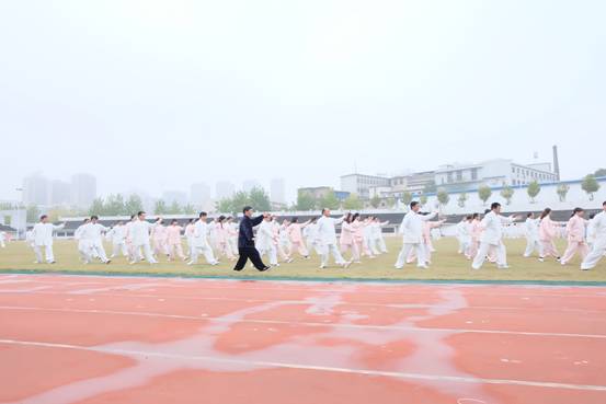 城市建设学院参赛教职工队上场顺序排第九位,我院参赛队员在周益强老师的带领下,迅速将手举起抱拳敬礼,随着音乐响起“起势”他们不紧不慢地放下双手,迈开左腿,眼神专注,态度认真,连贯而不失节奏地开始表演;参赛成员服装统一,队形整齐,动作技术规范,协调连贯,凸显了中华太极文化的博大精深。在比赛中,城市建设学院所有参赛队员们始终以饱满的精神状态演绎着我国传统的太极拳运动,出色的表演赢得了周围同学的阵阵掌声。最终我院在本次比赛中荣获团队三等奖。