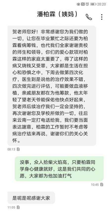 这份援助,是我们南华土木人勠力同心的最好象征;这份爱心,是我们南华给排人团结一致的最好体现;这份温暖,是我们作为同窗好友送去的一份最及时的慰藉。我们希望通过这聚少成多的涓涓细流,帮助潘柏霖同学拥有战胜病魔的资本,希望这份温暖可以作为黑暗中的一盏明灯,助他驱散阴霾,重新在青春的生命里激情挥洒汗水,继续放声高歌,放肆欢笑!