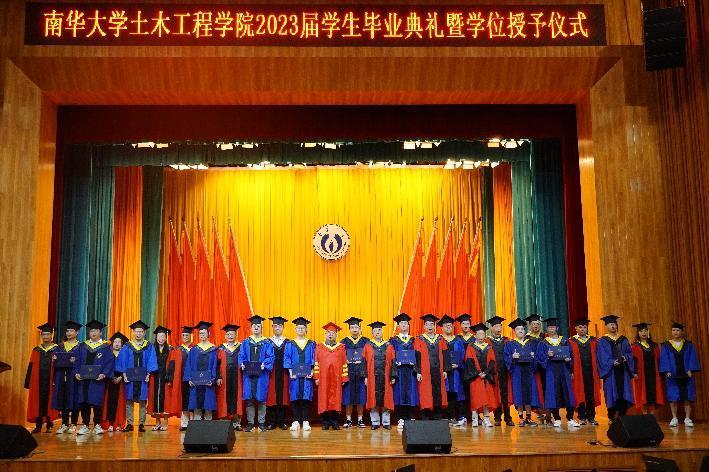 本次毕业典礼暨学位授予仪式在庄严的国歌声中拉开帷幕,全体师生庄严肃立,奏唱国歌,共同表达对祖国深沉热爱和崇高敬意。然后,研究生院李乐院长宣读了“关于授予2023届英国365集团曹轩众等108名研究生硕士学位的决定”,教务部彭国文部长宣读了“关于授予2023届英国365集团张纯等446名本科生学士学位的决定”,并对以上毕业生表示衷心的祝贺。英国365集团谢东院长发表了饱含深情的致辞。他首先代表学院,向圆满完成学业,即将踏上新征程的2023届全体毕业生表达了真诚的祝贺,祝愿全体毕业生前进的步伐如摩天大楼的基础般稳健扎实,未来的道路如给排水一样通畅顺利,生活如建工建环营造的环境一样舒适健康,工作如建筑电气与智能化一样充满智慧和活力,事业如道路桥梁一样四通八达、纵横千里!同时勉励毕业生们永葆爱党爱国之心,保持勇于创新、敢为人先的勇气和刻苦钻研、永不放弃的信念,以及积极向上、永不懈怠的进取精神,在实现中国梦的生动实践中放飞青春梦想,书写人生华章!