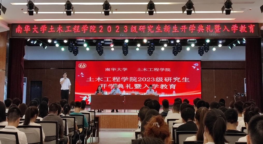 伴随着壮烈的国歌奏响,开学典礼正式开始。谢东院长热情欢迎125位新生加入这个大家庭,并向他们介绍了学院的师资力量和科研平台。他向新生们传递了“真、新、恒”三个字,表达了他对同学们的期望:要追求真正的知识和学问,要拥有创新的思维方式,寻找新的科学方法和工具来解决新的问题,遇到困难时要坚持不懈、勇往直前。他希望新生们能够发扬土木学科精神,踏实学习,勇于承担困难和挑战,并以“强国有我,我是南华土木人”激励大家。