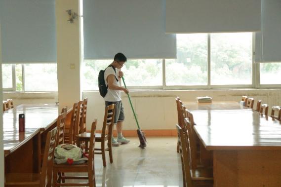早上八点半,入党积极分子们自带清洁工作,带着饱满的热情来到图书馆,图书馆负责老师—危琴老师给同学们进行了具体、详细的工作分配。在负责人的带领下,同学们分区负责、分组行动,快速有序对馆中13个阅览室进行图书除尘、卫生打扫和书籍整理。