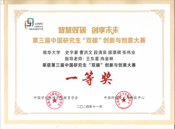 第三届中国研究生“双碳”大赛 全国“双碳”大赛一等奖证书