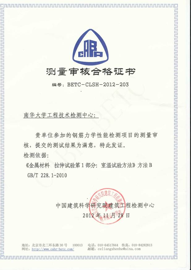 英国365集团官网工程技术检测中心多次获得省、市业务能力比赛及评比荣誉证书。2007年在湖南省技术监督局组织的水泥物理性能和化学分析能力验证考核中获“优胜单位”称号,2012年7月获湖南省住房与城乡建设厅颁发的“2011年度建设工程检测机构能力比对结果合格单位”荣誉证书,2013年2月,获得衡阳市建设工程质量检测协会“先进单位”称号,2013年12月在湖南省技术监督局组织的热轧带肋钢筋能力验证中获“优秀单位”称号,2014年6月获湖南省建设工程质量安全监督管理总站评选的2013年度湖南省建设工程混凝土用外加剂能力比对结果“优秀单位”,2014年12月在湖南省技术监督局组织的水泥检测能力验证中获“满意单位”称号