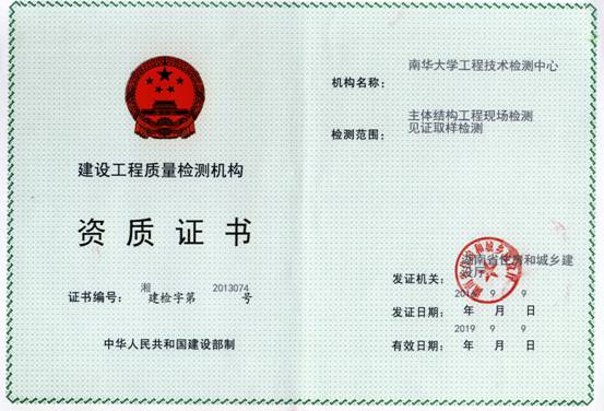 中心资质证书