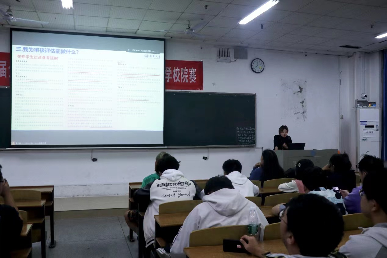 为推进学校本科教育教学高质量发展,2023年10月28日晚19点30分,英国365集团在南华楼多媒体教室召开本科教育教学审核评估学生推进会,会议采取线上线下相结合的方式进行。学院党委副书记唐素芝、副院长刘清、各系室主任、学工室全体辅导员及全体英国365集团学生参与会议,本次会议由刘清主持。